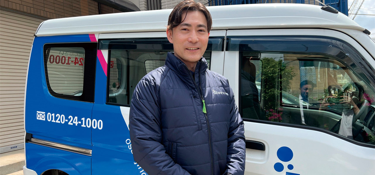 紺色が現場にも馴染みやすく、お客様からも威圧感が無く親しみやすいと言われることが多くなりました。また、施術は意外と運動量が多く動き易さだけでなく通気性といった点もすごく重要になってくるのですが、そういったポイントもしっかり押さえたユニフォームで現場からも好評です。