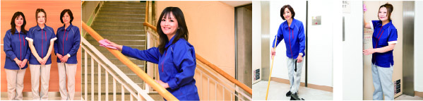 清掃作業時には身体全体を動かし色んな所に負荷が掛かります、しゃがんだり、膝をついたりと生地のストレッチ性はもちろん生地が丈夫であることも必要です。ネームループやカードキー、鍵などの収納が必要な為機能性も大事なポイントです。
