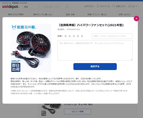 レビューの投稿先アドレスunidepot@tokyouniform.comにレビューを投稿してください。