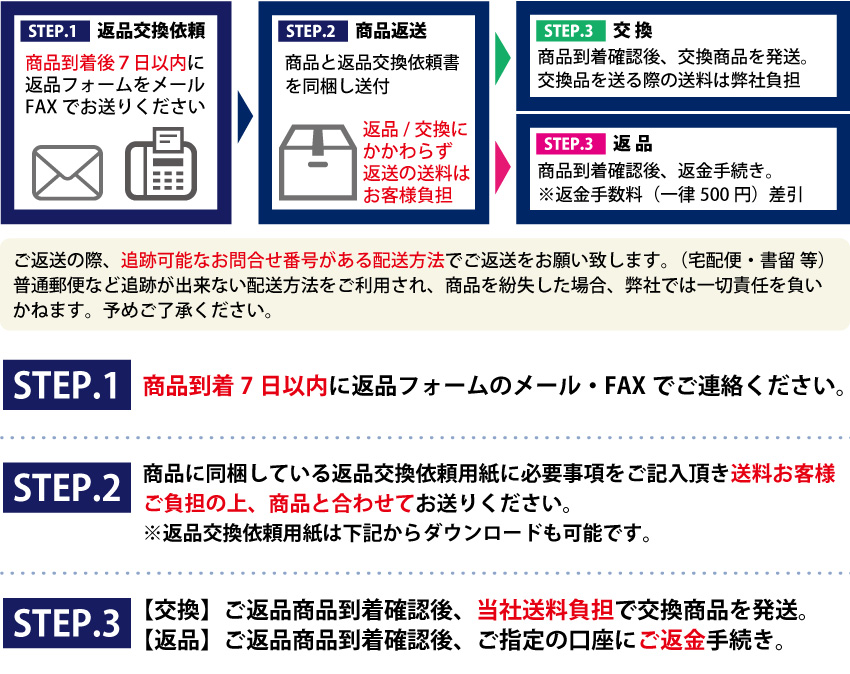 FAXで返品・交換を依頼する場合はこちらからダウンロードしてください。